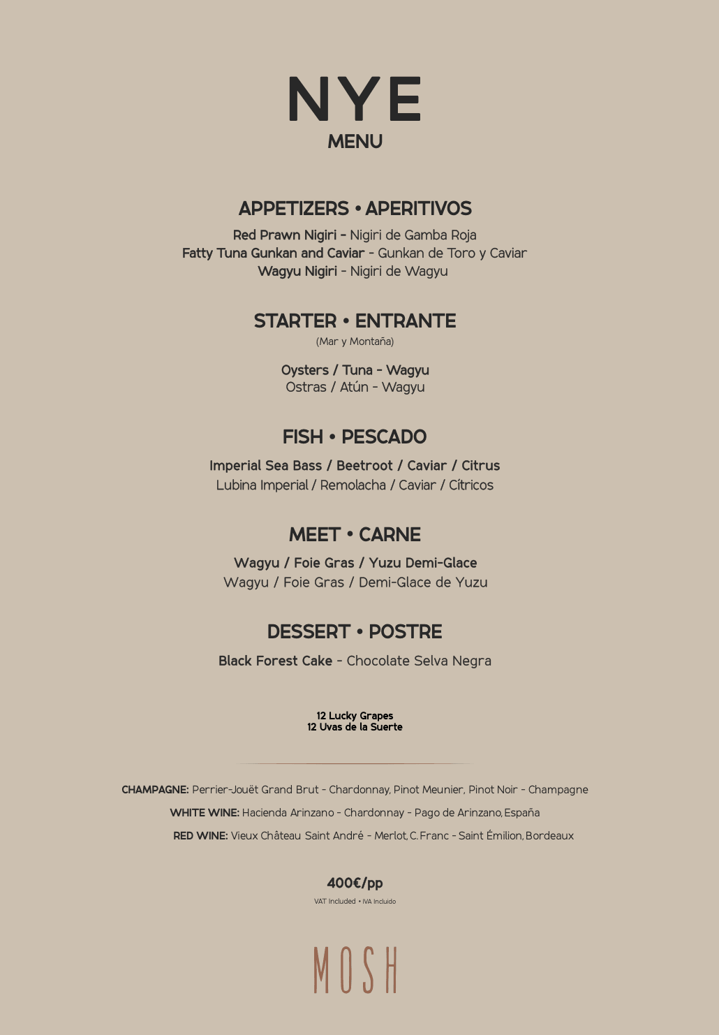 A place dubbed the best social space in Marbella, where you can eat, drink and have fun. Asian influences are evident on the menu, as well as some truly innovative dishes, from snacks to an excellent selection of sushi and salads. Three menus are offered for Christmas Eve, and you can also choose a dinner and party for New Year’s Eve, including white and red wine. New Year’s Eve reservations are accepted on +34 656 52 35 73 and at: moshfunkitchen.com.