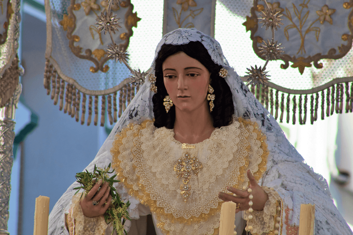 On this day, we will also see the Bride of Málaga – Virgen del Rocío, known as the ‘Bride of Málaga’, that is, the altar of the Rocío brotherhood featuring a figure of Mary dressed in white robes.